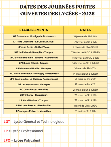 Voici les différentes dates des journées portes ouvertes des lycées du secteur. Il est très (...)